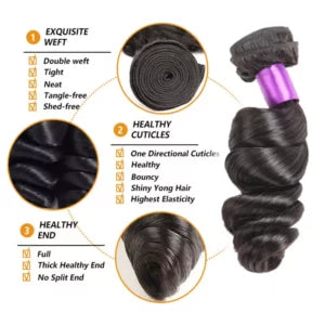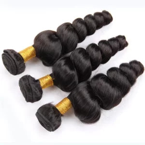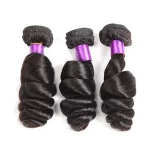 Our Loose Wave Weft Extensions are crafted from 100% unprocessed, virgin human hair, providing a soft, bouncy wave pattern with a beautiful shine and natural movement. These bundles offer a natural, voluminous look that blends effortlessly with your real hair, giving you styling freedom and flawless results.