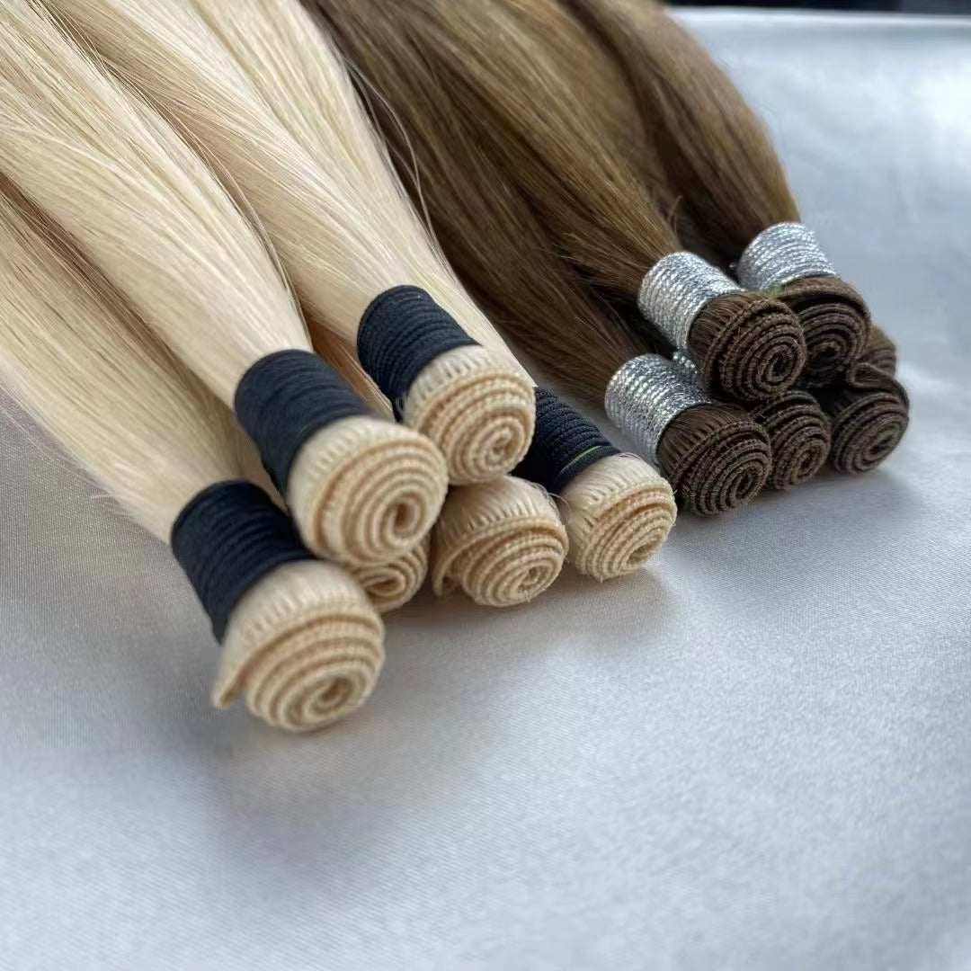 Our 18″ Hand-Tied Hair Extensions are made with 100% premium human hair, designed for a seamless, natural look with minimal bulk at the root. The hand-tied wefts are ultra-thin, flexible, and ideal for creating long-lasting volume and length with a flat, invisible finish.