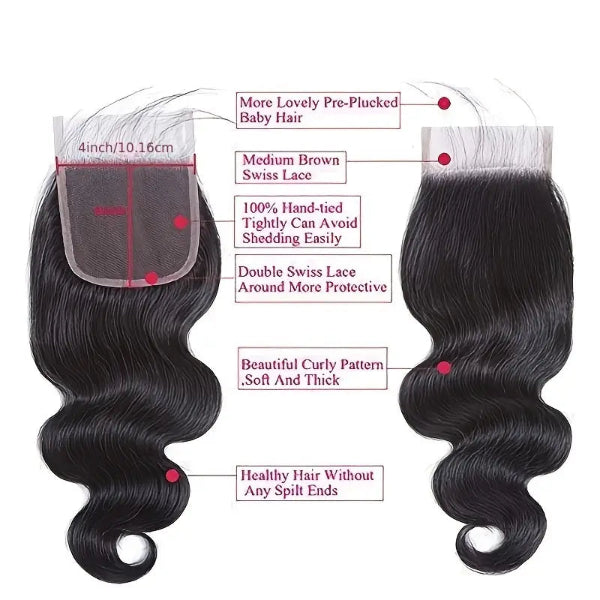 Perfect your hairstyle with the 4×4 Body Wave Lace Closure, designed to give your sew-in or wig a seamless and natural-looking finish.