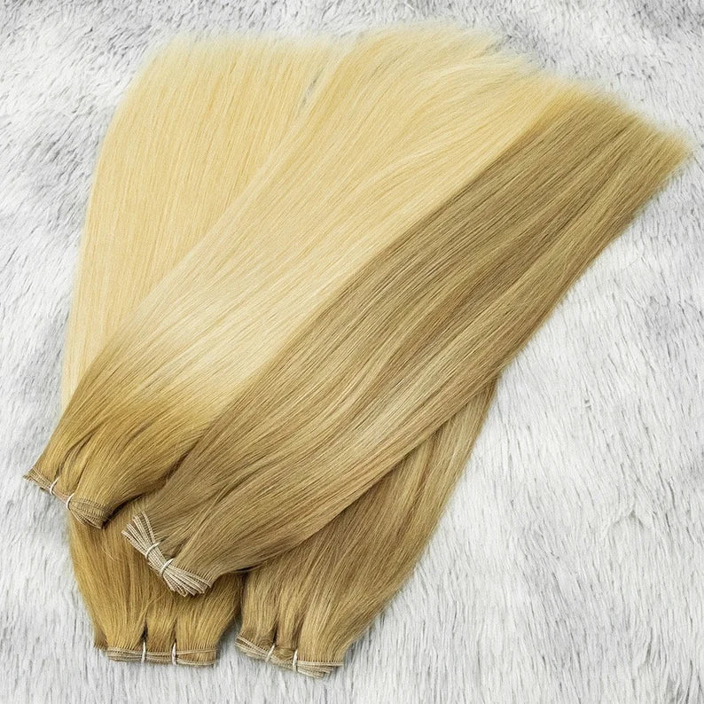 Genius weft is a new kind of weft, which is designed based on the hand tied wefts. So, it can also be called “the second generation of hand tied”. It is improved compared with hand tied. It has no return hair, can be cut and no shedding after cut. Genius wefts can also lay as flat as hand tied, which is the reason why it is so popular now.